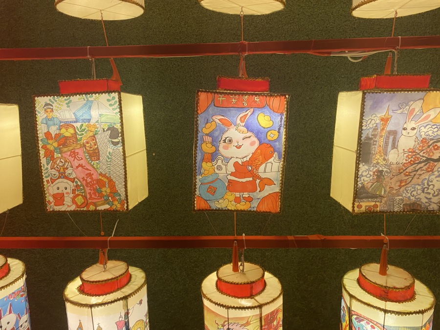 值得一提的是,今年年初,广州文化公园以生肖兔为主题面向全市小朋友征集画作,他们的画作也被印在公园职工手作的灯笼上,打造为公园北门的灯笼墙。