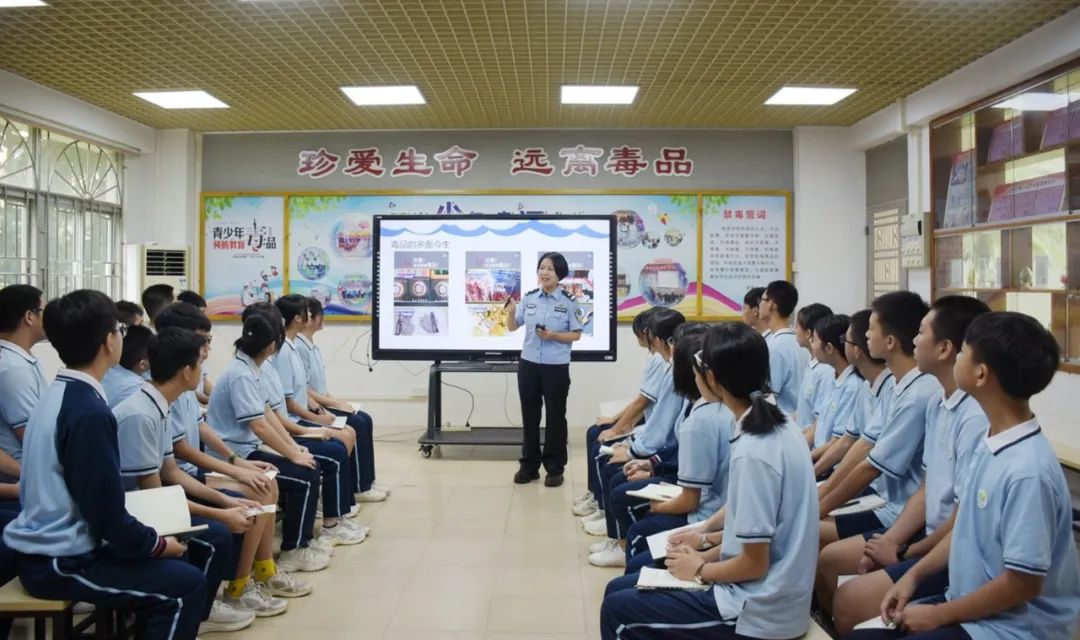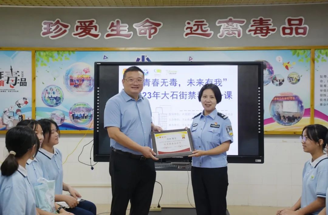 本次活动不仅邀请了专业禁毒警官走进校园,在大石中学为青少年带来一堂精彩的禁毒知识小课堂,该课堂也通过广州市区融媒体云平台新花城向各学校师生开放,大石街各学校根据自身情况安排收看。