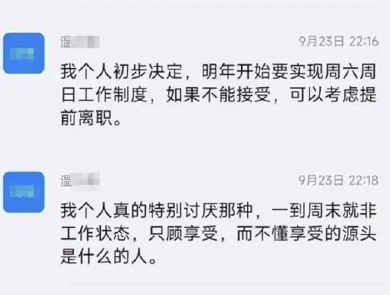 据网传聊天截图显示,江西某国企建筑设计院院长温某在钉钉群发言,称“千万不要以为周六周日就是非工作日,不能有传统机关周末的概念”“我个人真的特别讨厌那种,一到周末就非工作状态,只顾享受,而不懂享受的源头是什么的人”“工资是按月给的,不是按22天给的”,并个人初步决定明年开始实行周六周日工作制度。
