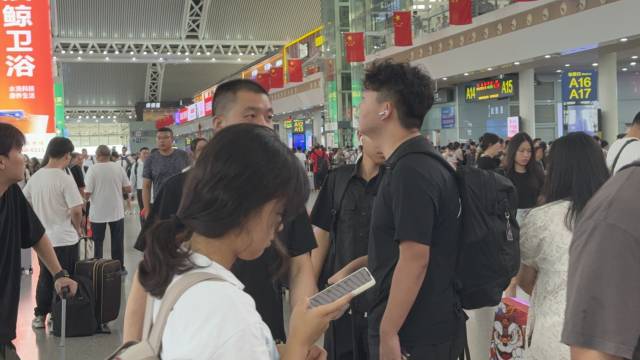 乘客张先生一家今天出发到贵州游玩,他说:“弟弟在贵州办婚礼,贵州的山水非常美丽,空气特别好,这次正好一家人去玩一遍。”