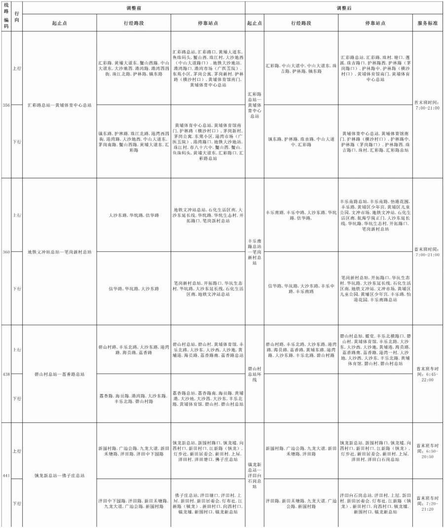 28日,记者了解到,为进一步优化公交线网布局,广州市交通运输部门决定自2023年9月29日起,调整公共汽车356、360、438、441路等4条线路,暂停运营公共汽车328、433路等2条线路,详情如下。