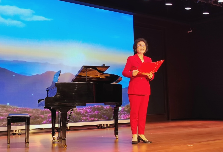 著名女高音歌唱家、广州歌剧学会会长、本台音乐会的导演段岭深情朗诵,“我曾经不止一次地想过,祖国,究竟是什么?每一次我想起‘祖国’这两个字,血管里便燃烧着一股股的热血,眼里便泛起一片片晶莹的泪花,心中荡漾着温柔的浪波……”这首唱不完的恋歌,这篇写不尽的美文,印刻在了现场观众的心里。