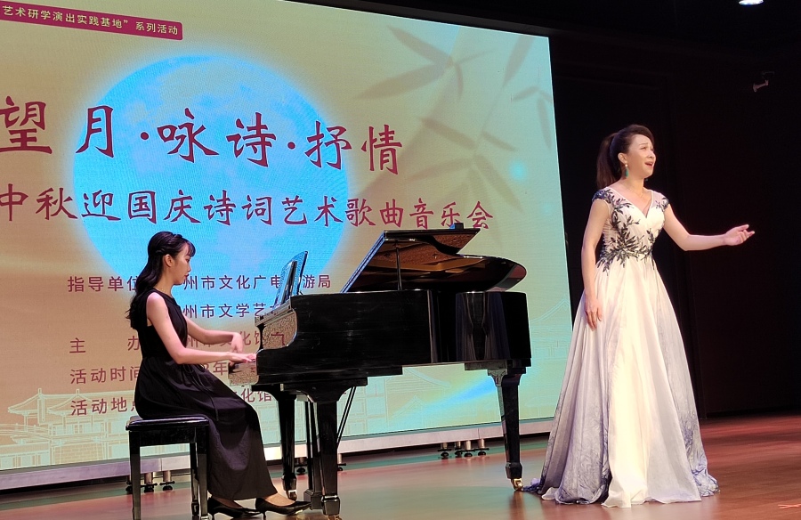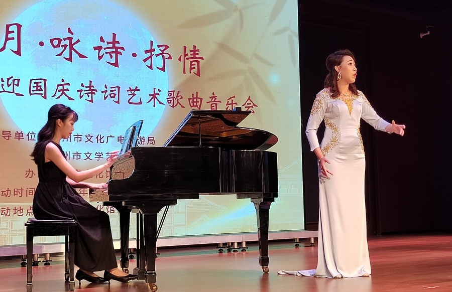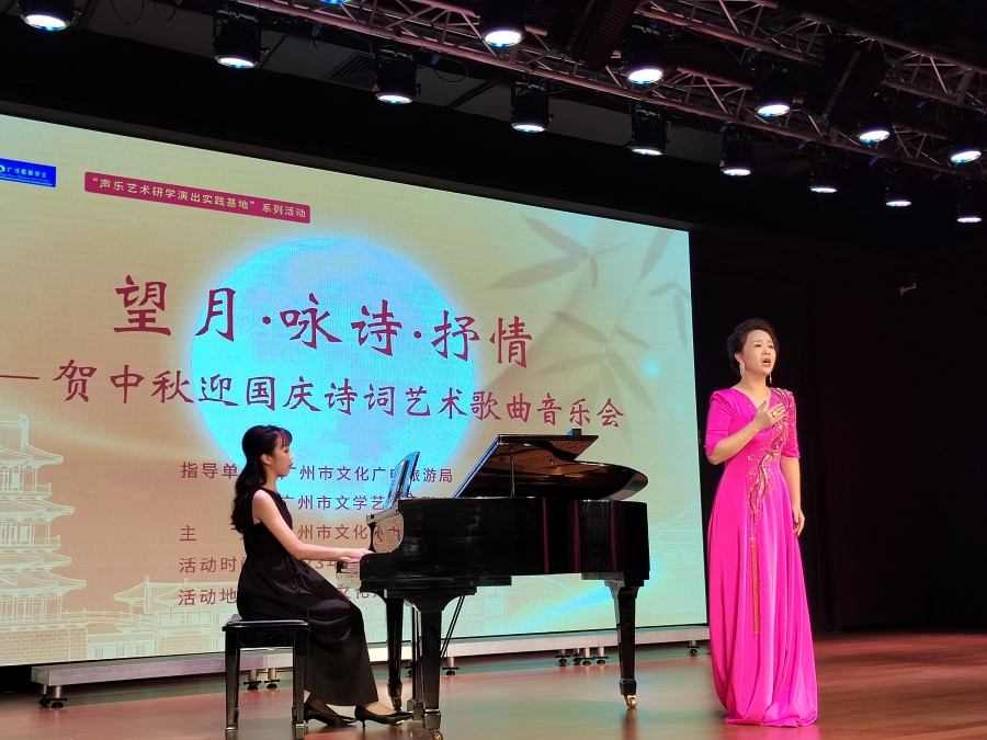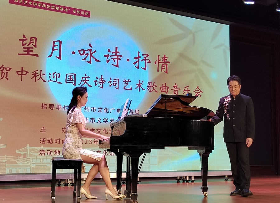 “走出剧场,月色溶溶,那些被唱诵的诗词,仍然萦绕在我的耳边。”9月27日晚,由广州市文化馆与广州歌剧学会联合主办的“望月·咏诗·抒情”贺中秋迎国庆诗词艺术歌曲音乐会在广州市文化馆实验剧场2精彩上演,广州歌剧学会一众著名歌唱家携手青年优秀歌手,给观众带来了一场诗与歌的盛宴。广州市文联党组成员、专职副主席彭宇、胡子英以及广州市文艺家协会的相关负责人出席了本场音乐会。