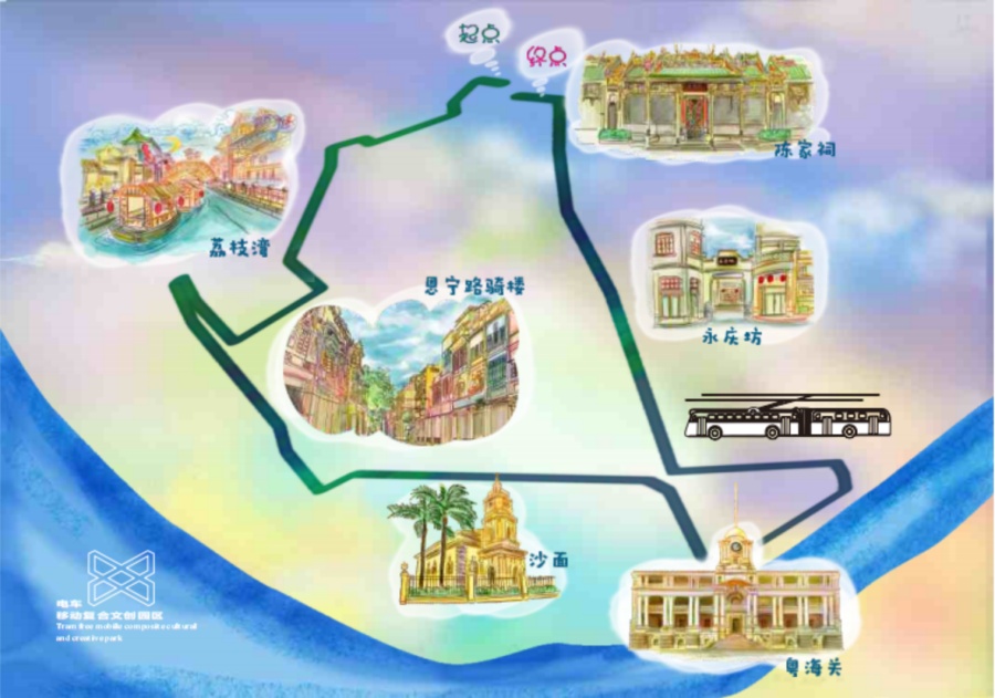陈家祠—荔枝湾—永庆坊—六二三路站(沙面)—粤海关博物馆—文化公园(十三行博物馆)