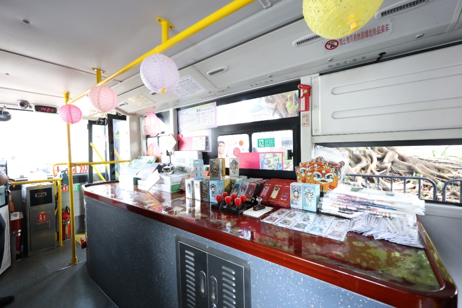 走进车厢,又是别有洞天,首层设置了文旅文创产品展示区,景区潮玩文创产品琳琅满目,是拍照打卡的首选;二层布置了传统编织灯笼及中秋传统挂饰,这些造型精巧的手工艺品以纱布、绸缎、玻璃纸等为材料,通过岭南传统手工技艺制作而成,在灯光下折射出五光十色,彰显了百年老字号“广州电车”的浓厚文化内涵,映衬出别样的“广式”浪漫。
