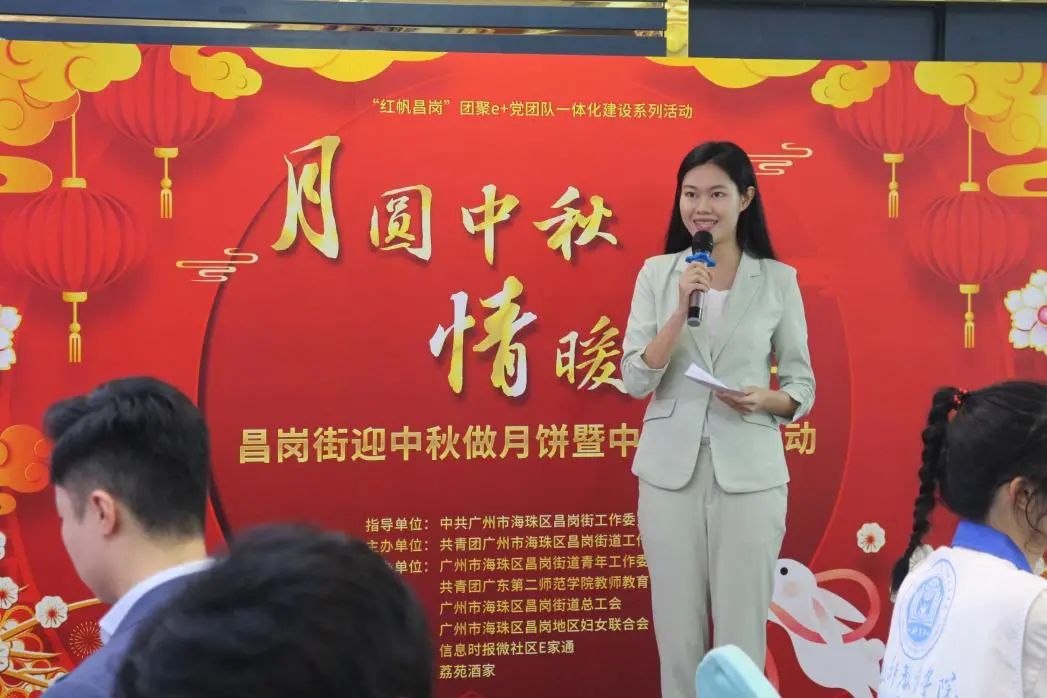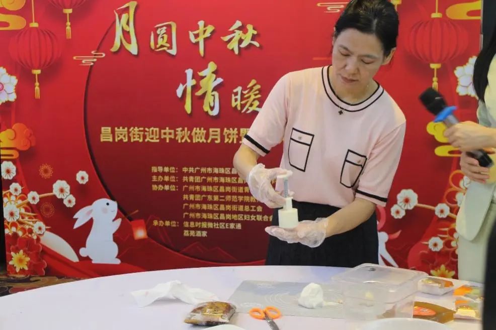9月26日下午,在中秋佳节来临之际,由昌岗街党校指导,昌岗街道团工委主办,昌岗街道青工委、广二师教师教育学院团委、昌岗街道总工会、昌岗地区妇联协办,信息时报微社区e家通、荔苑酒家承办的“月圆中秋 情暖人心”昌岗街迎中秋做月饼暨中秋慰问活动在荔苑酒家举行。活动邀请了昌岗街团工委委员、团员,昌岗街青工委代表,两新团组织代表,联星团委代表,广二师学生代表等青年参加。