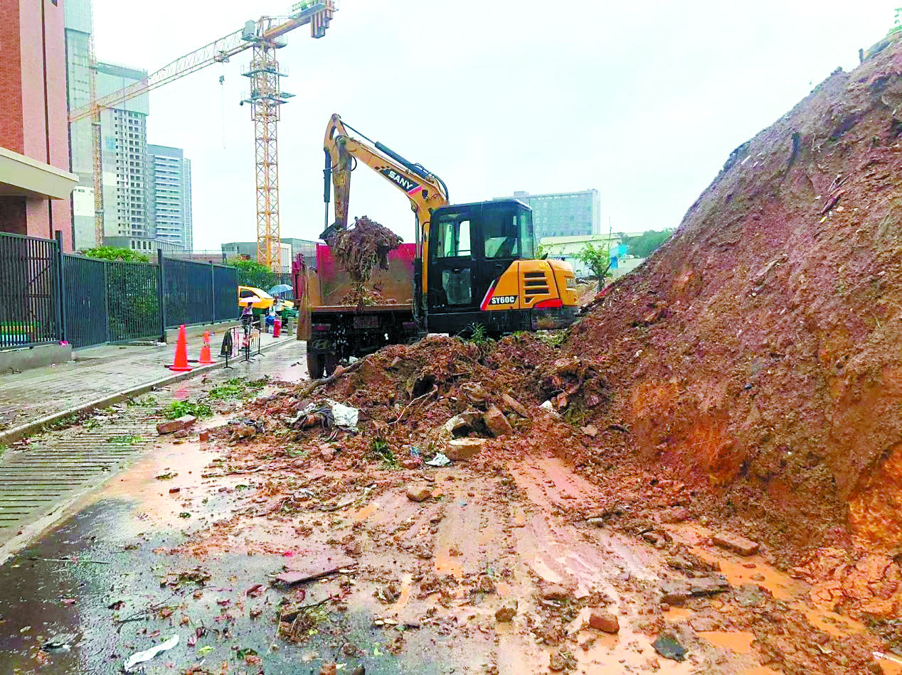 “小山坡下的马路堆满了滑落的山泥与碎石,还有一些树枝,阻碍了行人和车辆通行。”梁桂林回忆。此外,发生山体滑坡的道路就在小学旁边,距离仅百来米,当时正值学生上学与市民上班高峰期,如果不及时清理现场的淤泥与碎石,不仅会阻碍交通,还可能会危及行人安全。加上最近暴雨天气频发,小山坡随时有可能再次发生滑坡,情况非常危险。