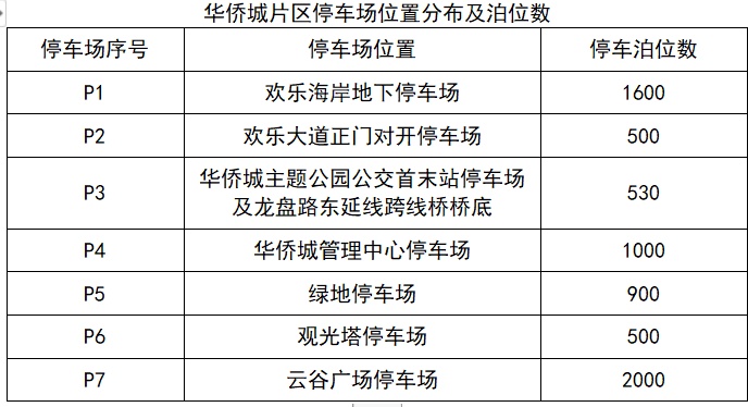 (1)假期期间,华侨城提供停车场7个,共约7030个停车泊位供假期市民游玩停车需求。