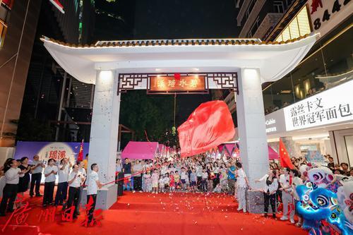 古朴大气的崭新牌坊、非常应节的中秋街景、美轮美奂的汉服巡游、气氛浓厚的中秋社区游园会、商品琳琅满目的江南西市集……9月28日晚上,江南西碧水瑶溪牌坊揭幕仪式及中秋游园会在海珠区江南西路青凤大街举行,活动精彩纷呈,让周边居民在浓厚的节日氛围中亲身体验江南西的变化,感受传统文化的魅力。