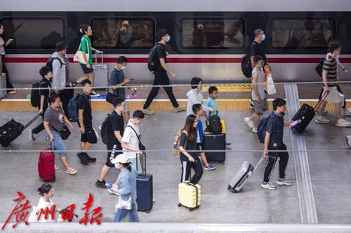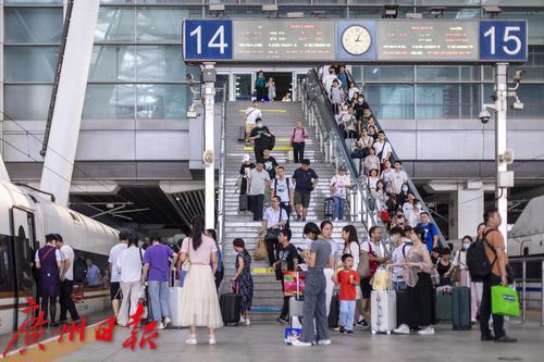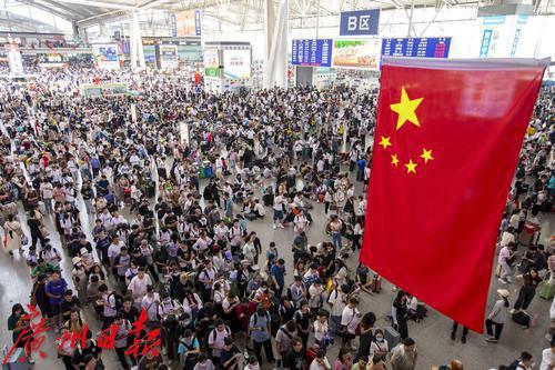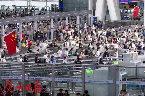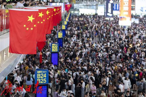 中秋、国庆长假首日的广州南站。