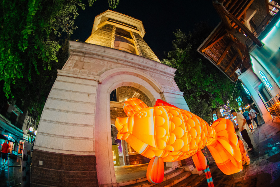另外,适逢中秋遇上国庆黄金周,岭南天地围绕“鱼灯”这项岭南在地文化,携手毕业于广州美术学院的摸鱻儿团队打造第二届岭南灯会,以新颖的鱼灯形象,用创新的手法结合传统竹编、扎作等工艺,打造多个应节“摸鱼”灯会场景,包括位于天地广场的“随心所鱼”、钟楼的“如鱼得水”,以及二期广场的“鱼众不同”,三鱼合一输出“假日摸鱼放松心身,偷得浮生半日闲”的正向理念,同时为广大市民营造富有文化韵味的节庆城市游玩场景。