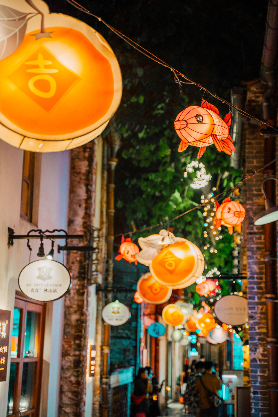 在岭南天地的特色街巷上空,灵动的传统鱼灯也悄然现身。市民跟随鱼灯踪影,漫游祖庙大街、文明里,还能挖掘到众多宝藏好店。据了解,祖庙大街是明末清初佛山繁华闹市所在地,如今摇身一变岭南天地小资情调一条街,云集佛山特色手信和美食,如龙狮文创馆的醒狮、栢年堂的陈皮龟苓膏、佛山公的盲公饼、裘真的手工皮包、北岛复古的饰品、一朴芳华的木头文创等等,值得花一下午的时间慢慢闲逛。