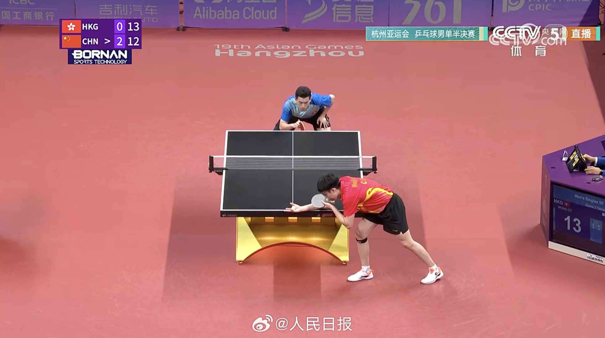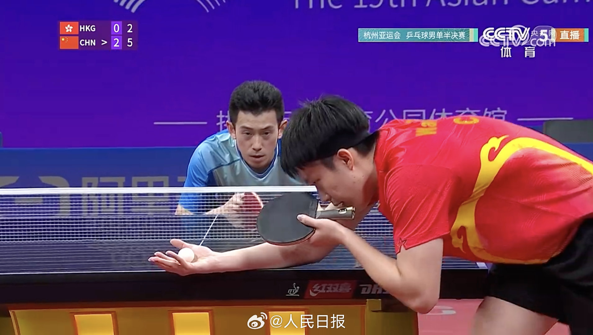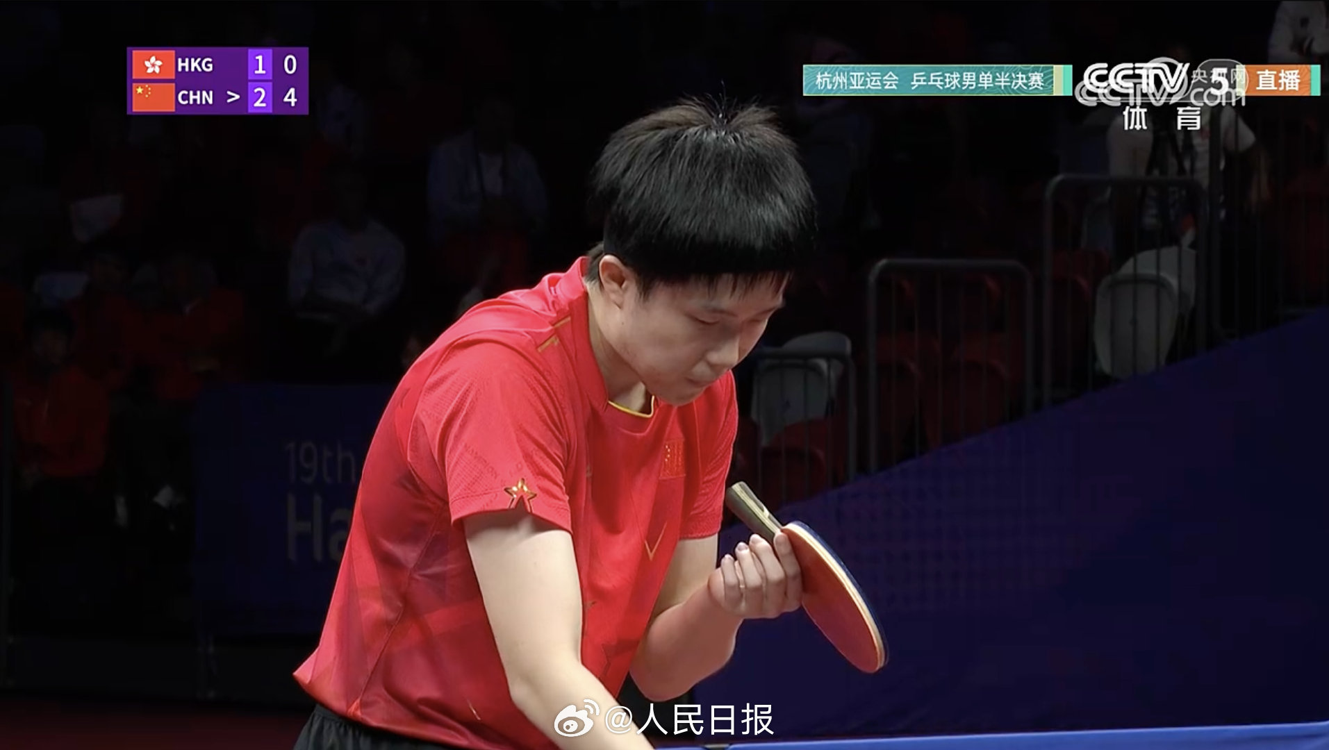 杭州亚运会乒乓球男单半决赛,中国队王楚钦战胜中国香港队黄镇廷晋级决赛。