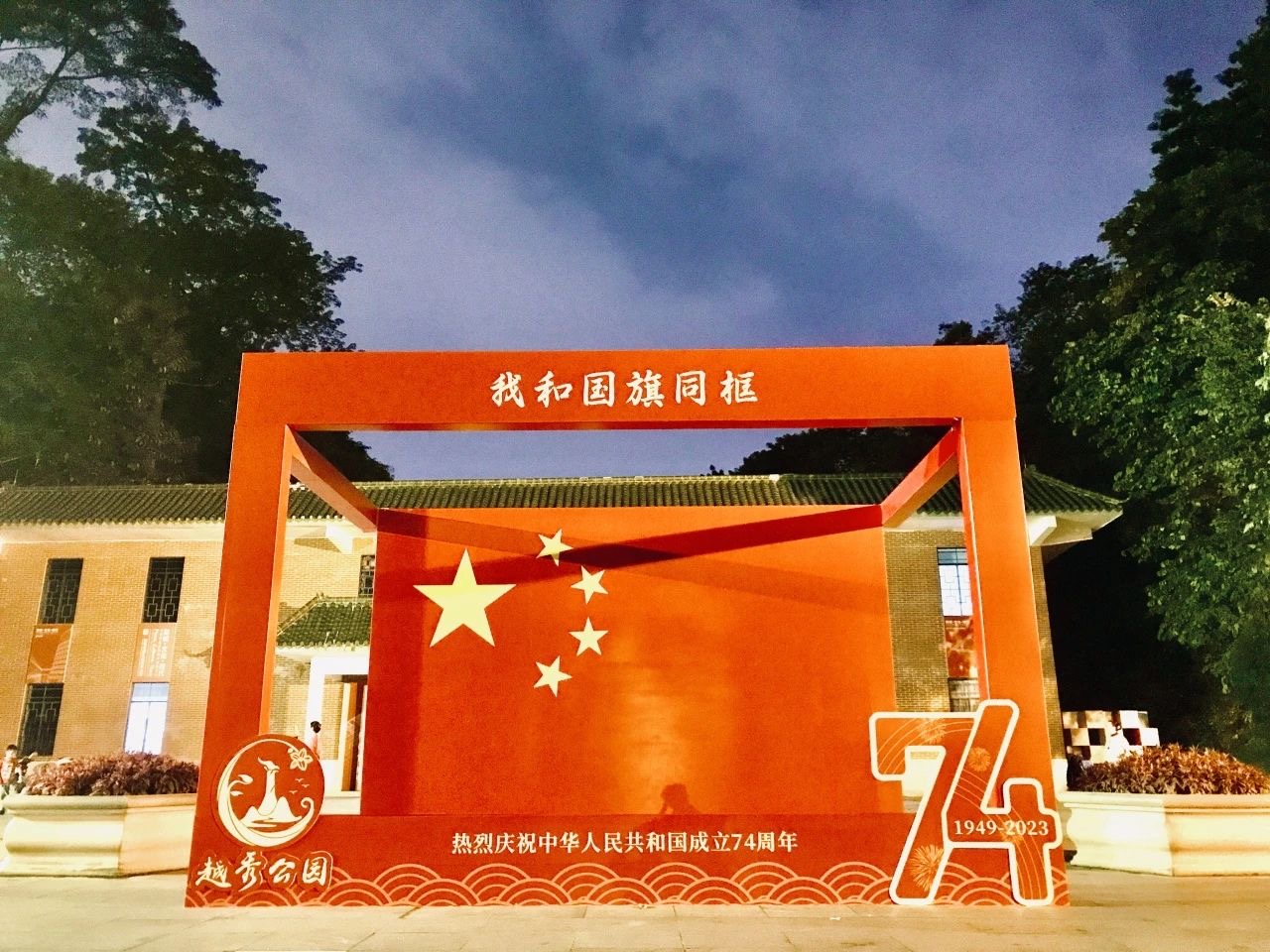 在各大公园和景区,国庆的喜庆气氛也是随处可见。在广州最大的综合性公园越秀公园,设置了超大型五星红旗,以“我和国旗同框” 的特别形式,表达祝福祖国、感恩祖国、热爱祖国的浓浓情意。假期以来,公园市民游客纷纷前来打卡,秀出对祖国的各种祝福。