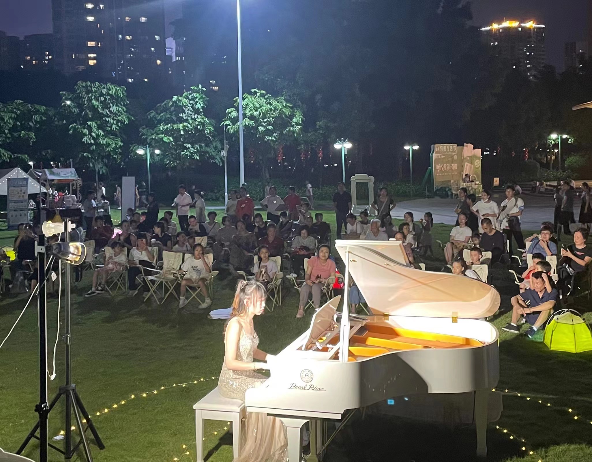在珠江公园,园方联动珠江钢琴、珠江啤酒,开启三“珠”联动珠联璧合音乐集市嘉年华,市民游客跟着钢琴和架子鼓的节奏,轻松欢快地唱着歌曲。