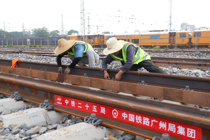 该项目长轨换铺临近既有京广铁路,且与信号、电气化等专业交叉作业点多,施工干扰大,安全风险高。为此,建设单位广州局集团广州工程建设指挥部会同施工方中铁二十五局,精心制定施工方案,加强全线施工组织协调,严把技术安全质量关,将施工安全风险降到最低。