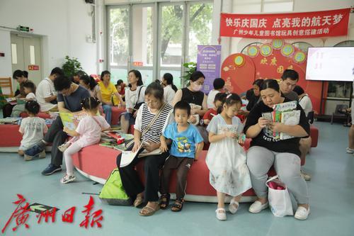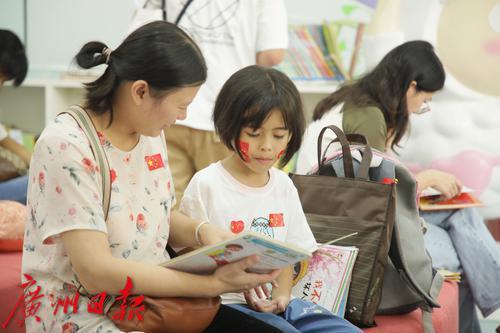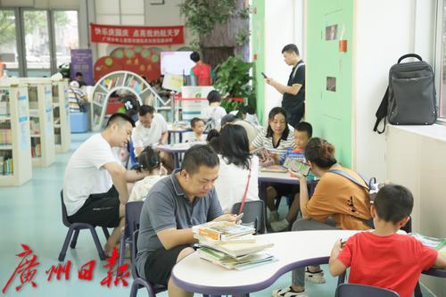 今年中秋国庆“双节”8天假期,不少市民和小朋友选择到图书馆看书“充电”。10月3日,记者在广州少儿图书馆看到,在绘本馆、港台馆等区域,均坐满了在阅读和借书的家长和小朋友,其中部分家长和小朋友手上拿着国旗、脸上也贴着国旗的小贴纸,非常有节日气氛。