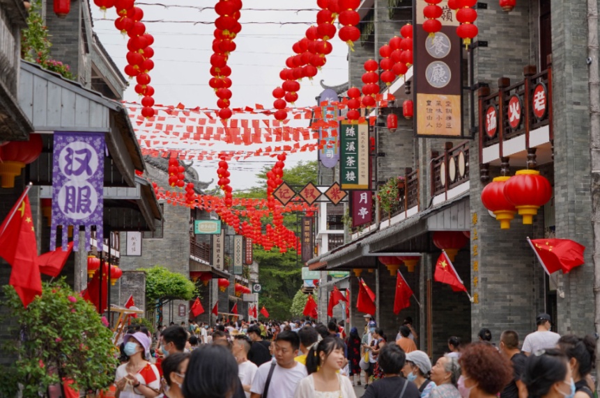 双节期间的岭南印象园,怎一个“热闹”了得。在这里,欢乐巡游的演员们穿着喜庆艳丽的服饰,穿梭在园区的大街小巷,让大小朋友们争先围观。热闹醒狮,两只生龙活虎的狮子,在鼓乐的伴奏下翩翩起舞,还有国庆的特别活动醒狮采青,引得人群阵阵喝彩。快闪舞蹈,传统与现代文化碰撞的快闪舞蹈,你方唱罢我登场……