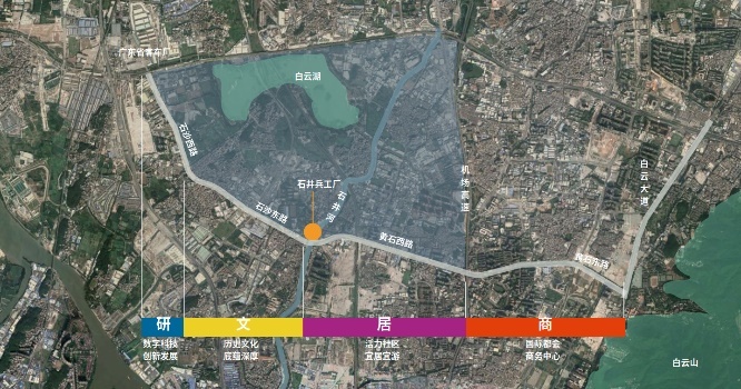 与兵工厂旧址一路之隔的石井河畔,现有一处滨水绿地,但场地品质较差,缺乏文化体验。此处作为历史信息、亲水空间、公共活动等多元体验要素的交汇点,具备打造为文化主题口袋公园的潜力,通过将老故事注入新公园,带来新活力,给社区居民带来全新的生活场景。