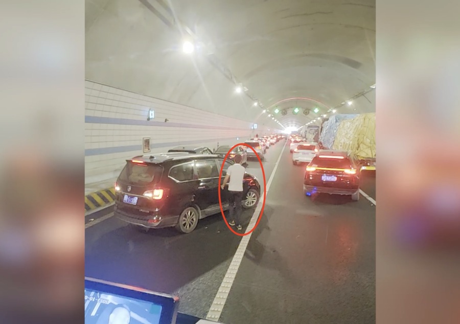 消防救援人员迅速出动,却在距离事发地约7公里的一条隧道处,发现前方路面因交通事故而出现严重拥堵,消防车辆很难前行。