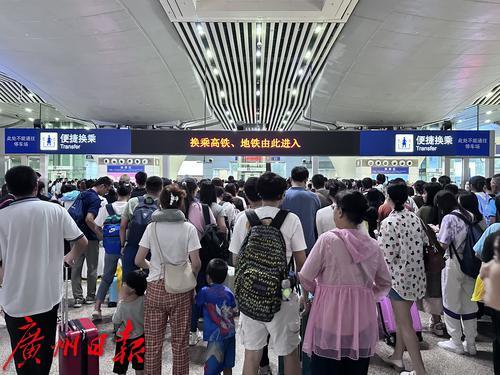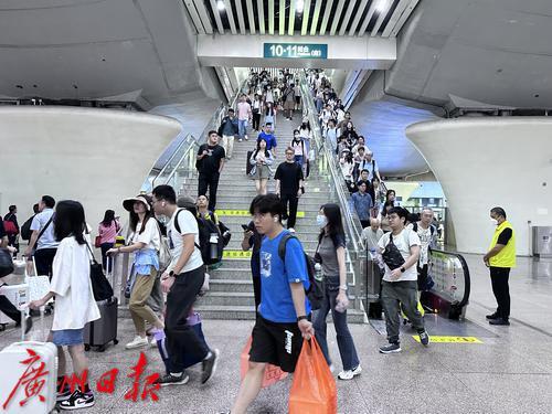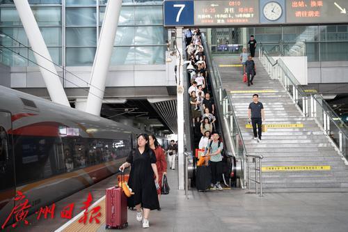 10月6日是中秋、国庆假期的最后一天,广州南站迎来返程客流最高峰,共计到发旅客79.1万人次,其中发送旅客33.7万人次,到达旅客45.4万人次,到达旅客突破了2023年5月3日原单日到达旅客43.6万人次的历史纪录。