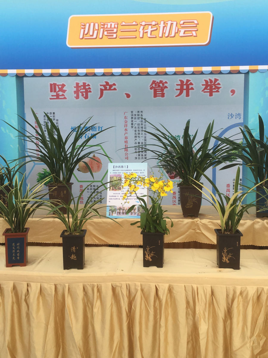 沙湾墨兰在番禺沙湾地区有400多年的种植历史,包含“金咀”“银拖”“企黑”“白墨”等多个品种,尤以“企剑白墨”最为优异,“企剑白墨”被评为“广州市名优农产品”。