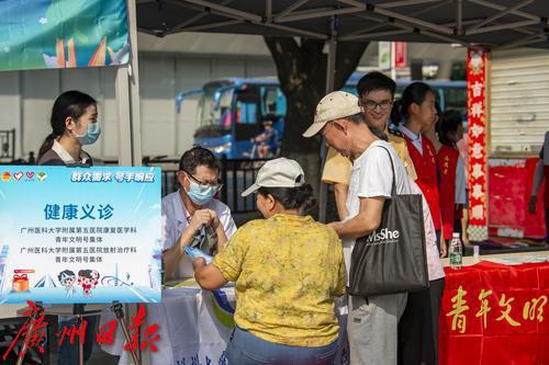 青年文明号集体广州医科大学附属第五医院康复医院科、放射治疗科为市民群众进行健康义诊。
