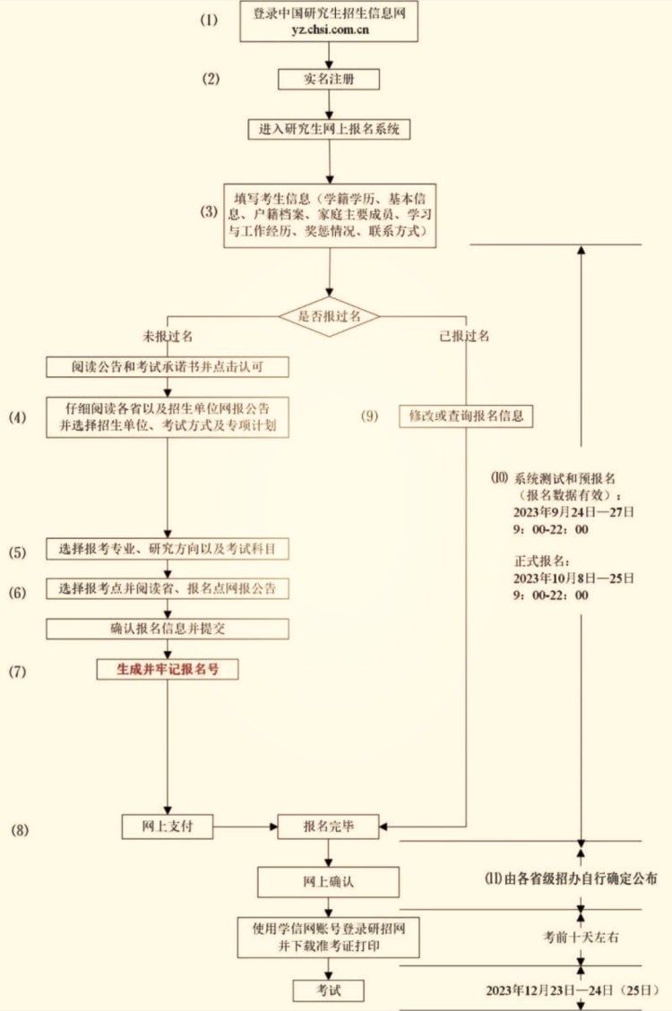 研招统考网上报名流程图。图片来源:中国研究生招生信息网