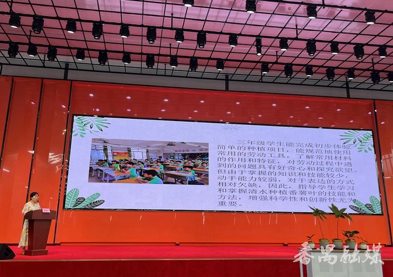 在大会上,首批科学种植劳动教育示范课案例代表——番禺区大石小学梁淑冰老师和南沙区鱼窝头中学张志坤老师分别就“清水种植番薯叶”和“岭南中草药科学种植”作了案例分享。