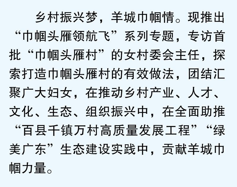 这一切转变,离不开背后的“她”力量。2021年,广州市妇联出台了打造“广州巾帼头雁村”的实施方案,五华村正是首批巾帼头雁村,五华村党委书记、村委会主任曾秋颜带领“两委”班子走在建设的最前线,让老村庄焕发出新活力。