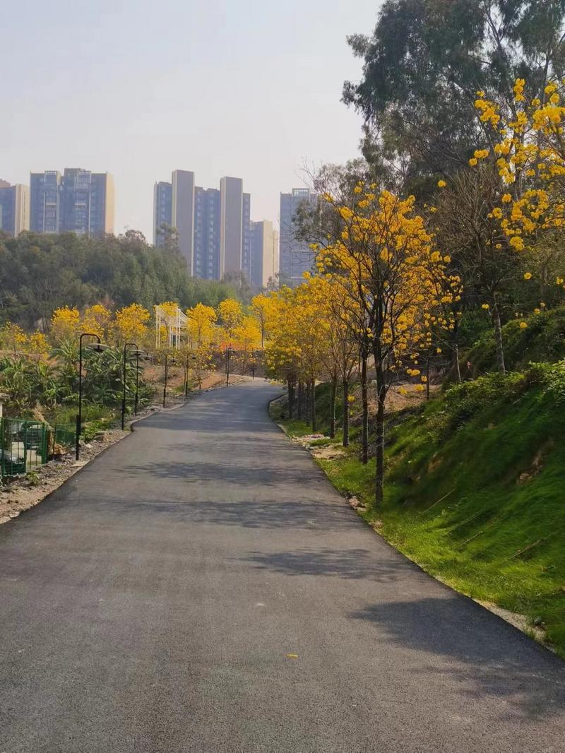 一年春景莫错过,最是花开好看时。每年早春三月,在花都区新华街五华村山地公园道路旁,一串串黄花风铃挂满枝头,轻盈的花枝在风中摇曳,恰似一串串风铃随风起舞,在蓝天白云的映衬下绘成一幅绚烂的春日图景,吸引不少村民前来“打卡”……谈起村庄的变化,不少五华村民们看在眼里,喜在心头。