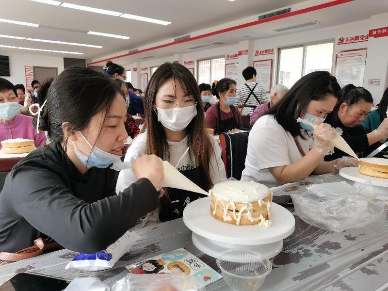 涂抹奶油、裱花装饰、摆放水果……3月6日,五华村组织开展三八节蛋糕DIY活动。在专业老师的示范指导下,大家充分发挥女性的心灵手巧与美食天赋,纷纷化身“西点大师”,为蛋糕抹奶油、裱花。一番忙碌之后,一个个各具特色的蛋糕便诞生了,大家捧着自己做好的蛋糕,脸上洋溢着发自内心的幸福笑容。“与一群姐妹们一起做蛋糕,很有过节的氛围,很开心、很热闹。”参与活动的张女士笑着说道。