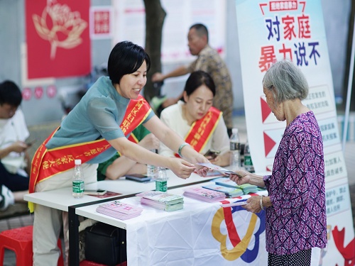 同时,活动设置 “妇儿维权法律咨询”摊位,通过宣传展板展示了反家暴经典案例、反家暴维权指引等相关反家暴内容,图文并茂地展示当权益遇到侵害时,要勇敢说“不”。活动现场,广州市律协组织成立的反家暴大使曾若男、杨萍、杜金敏、邓苗苗律师还通过派发普法宣传手册、现场咨询讲解等形式,为居民答疑解惑,将把“反对家庭暴力,构建和谐家园”服务真正送到群众的家门口。