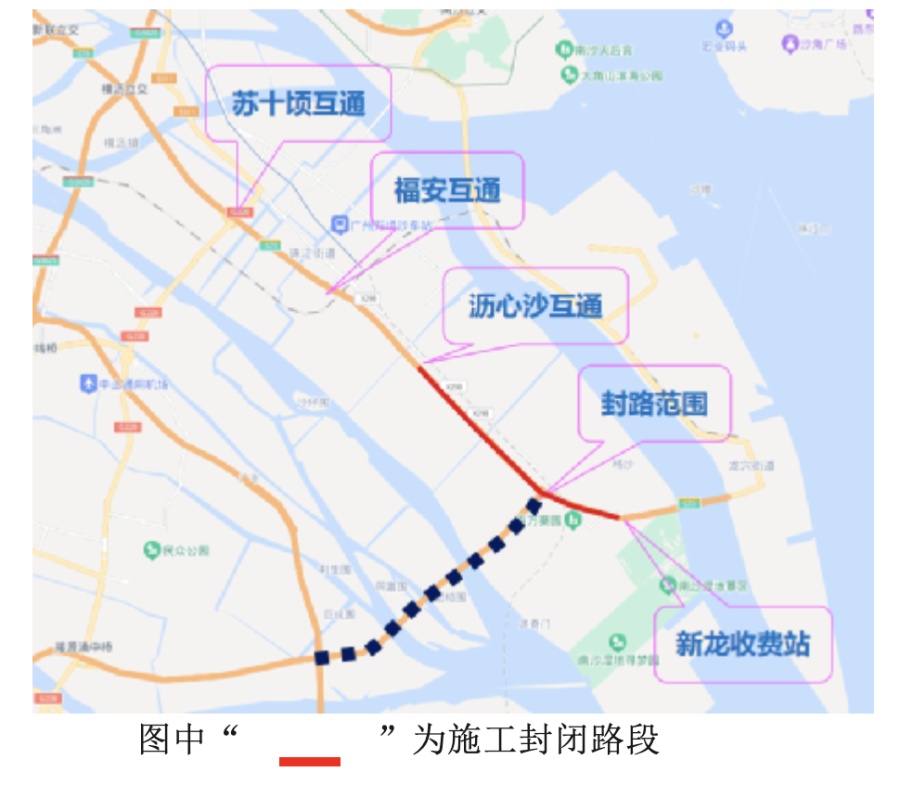 (二)南沙港区(龙穴岛)往广州城区方向车辆请绕行: