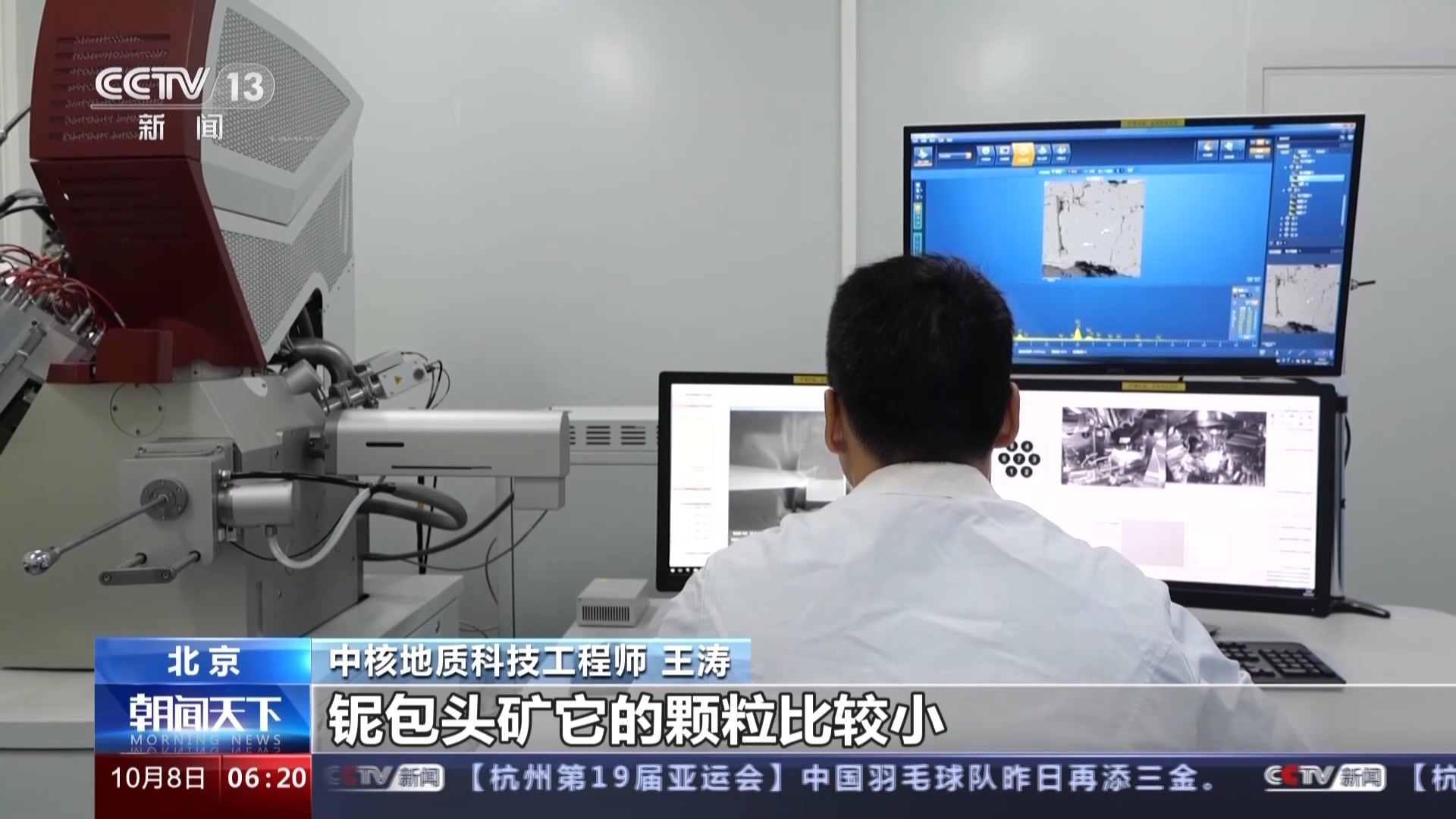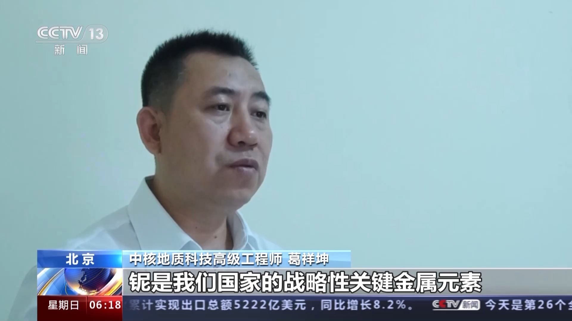 中核地质科技高级工程师 葛祥坤:从它的化学成分来看,是一种铌含量很高的一个包头矿,有望可以用来提取铌元素。铌是我们国家的战略性关键金属元素,可以用到很多场景,在我们核工业系统有相当重要的用处,另外还可以用来制造超导材料、高温合金等。