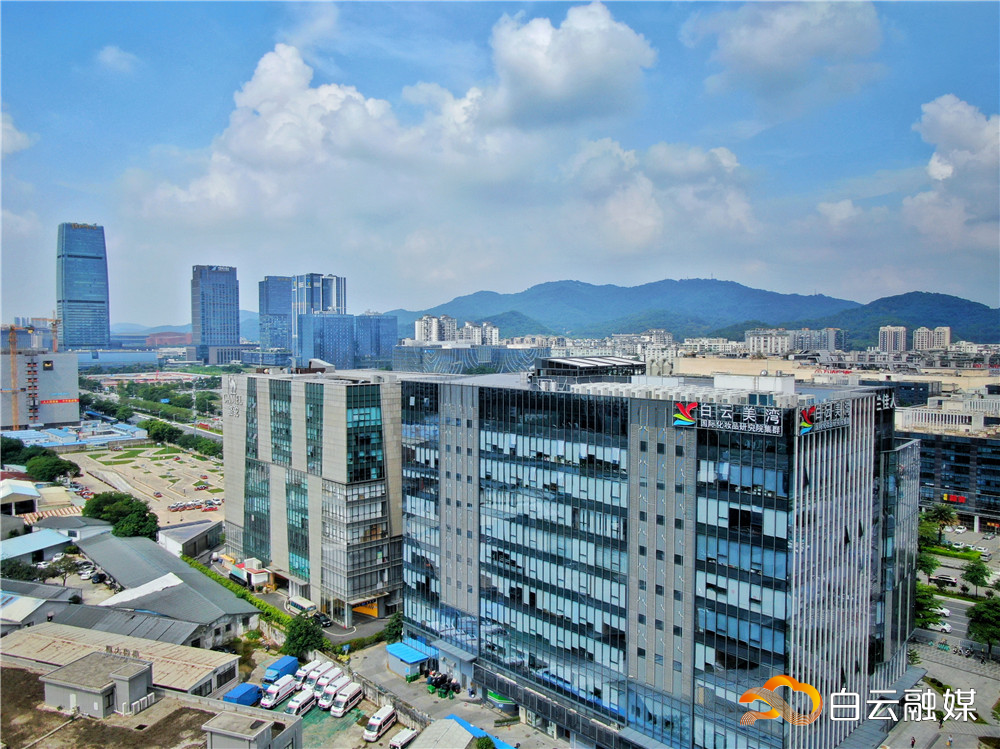 白云美湾国际化妆品研究院集群位于白云新城,致力于解决国内化妆品原材料“卡脖子”问题。谭札烽 摄