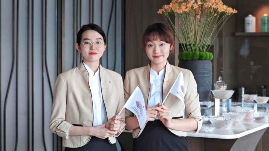 据悉,这13名顺职学生中,有4名学生在杭州康莱德酒店接待了来自卡塔尔的客人,有9名学生在杭州城中香格里拉酒店接待了来自马来西亚、阿联酋、叙利亚等国的客人。期间,面对不同国籍、不同文化背景的客人,同学们展现出良好的外语沟通能力和跨文化意识,他们对照亚运保障要求,对标一流服务水准,积极融入工作团队,认真完成工作任务,为客人营造温馨舒适、宾至如归的入住体验。
