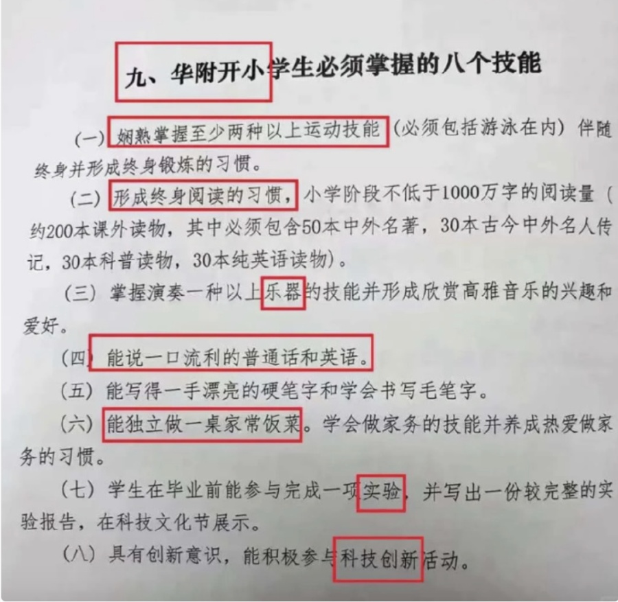 近日,一张印有“华附开小学生必须掌握的八个技能”的文件照片在网络上流传,引起网友关注和热议。