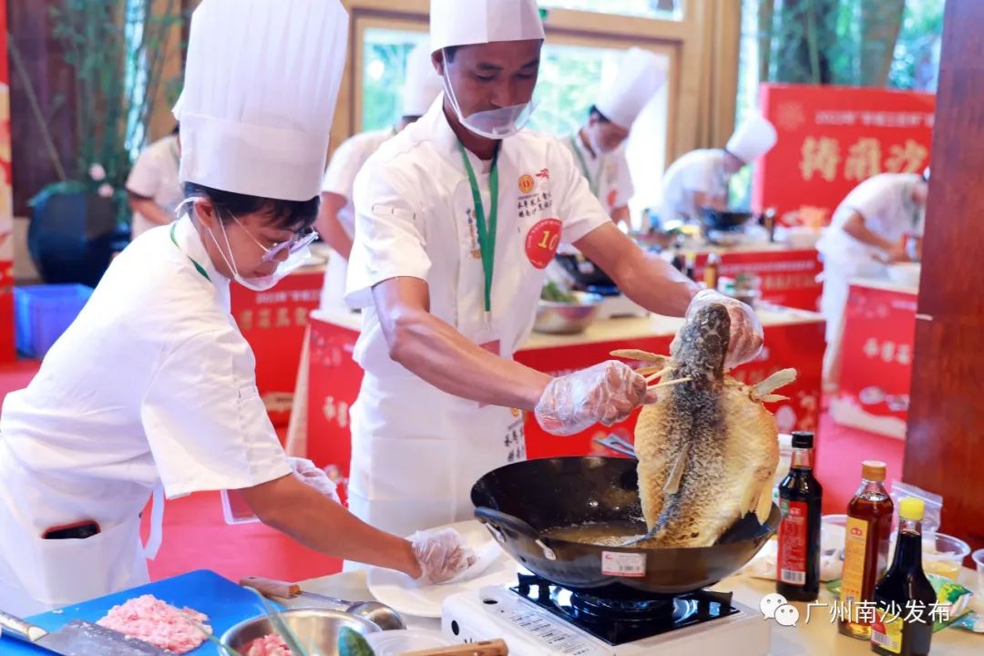 本次竞赛要求参赛选手在90分钟内,运用粤菜烹饪技法,做出一道指定菜肴以及一道自选菜肴,其中指定菜肴选用了南沙养殖的本地鲩鱼作为原材料。
