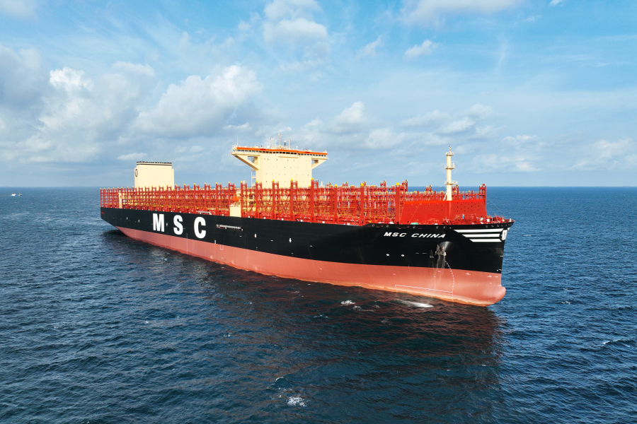 10月9日,中国船舶集团旗下江南造船联合中船贸易为中船租赁和瑞士地中海航运公司(MSC)建造的全球最大24116TEU超大型集装箱船系列船最后一艘“MSC CHINA”(“地中海·中国”)号已提前一个月交付。该船于9月25日命名,预计将于10月13日离厂。