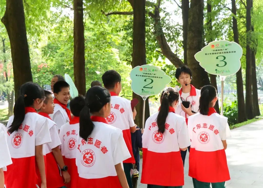 青年先行”广州青年志愿服务队,组织青少年志愿者“林长小队”与全市人流量较集中的生态旅游景区、森林公园、自然生态保护区等结对共建,为青少年提供生态宣教实践基地,让广大青少年身体力行保护树木,在全社会营造人人爱绿、积极植绿、自觉护绿的良好氛围。
