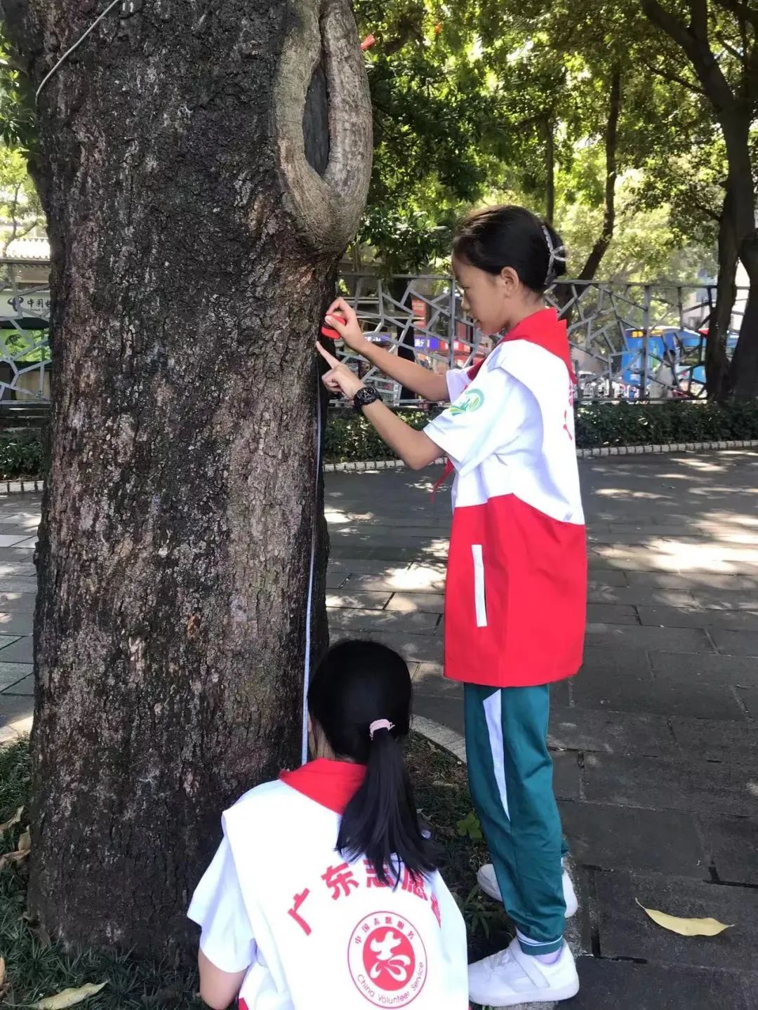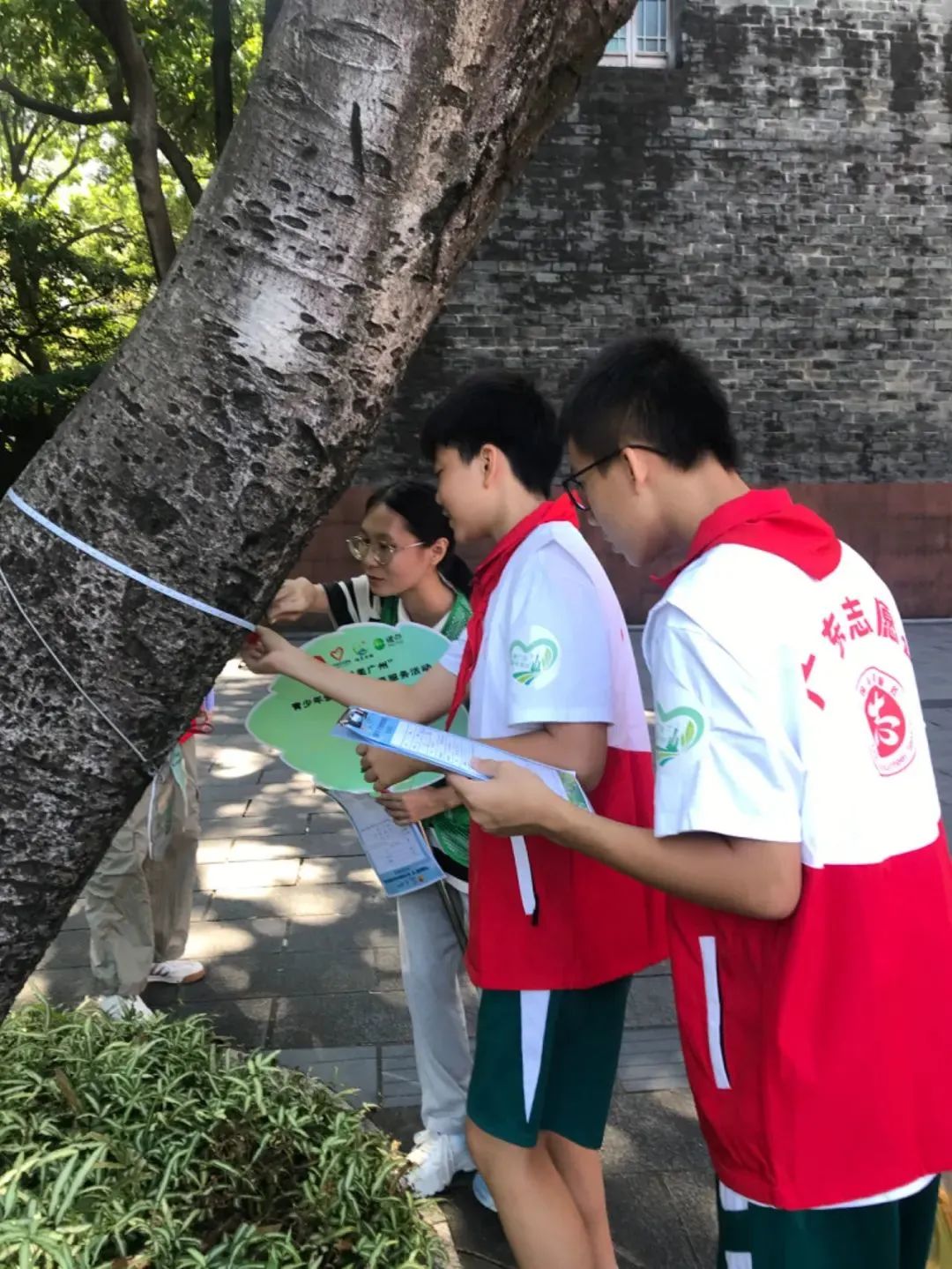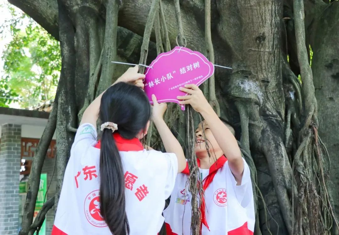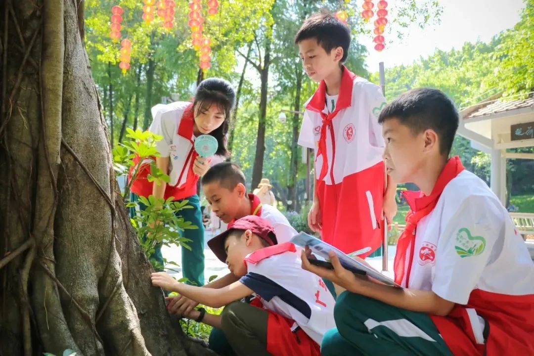 活动现场,中学生志愿者在越秀公园的专业科普志愿者带领下进行培训,参与绿化科普活动和古树名木保护行动,并进行“林长小队”结对挂牌。接下来,青少年每个月将定期到越秀公园开展爱绿护绿志愿服务,用实际行动守护树木树种,共建绿美广州。