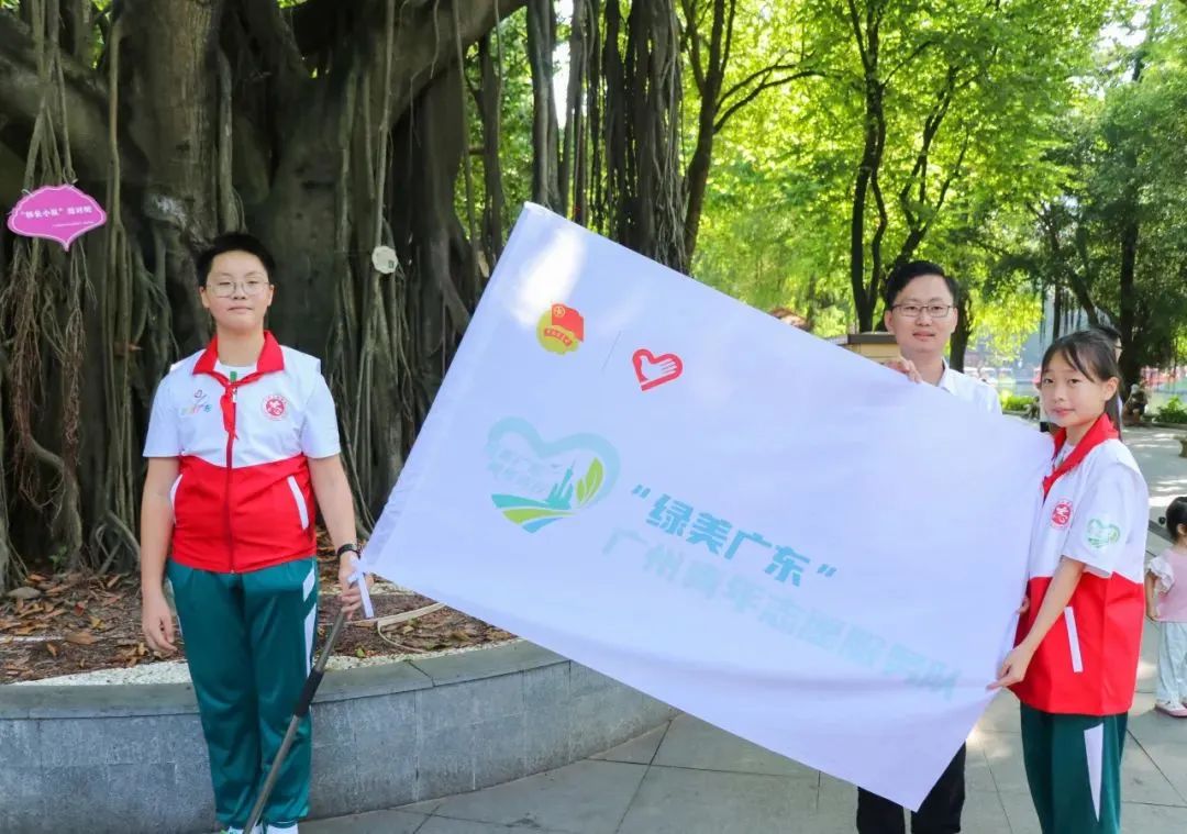 随后,青少年志愿者代表接过团市委授予的“绿美广东”广州青年志愿服务队队旗,代表广州青年志愿者发出“共建绿美广州”倡议,积极参与绿美广州生态建设。