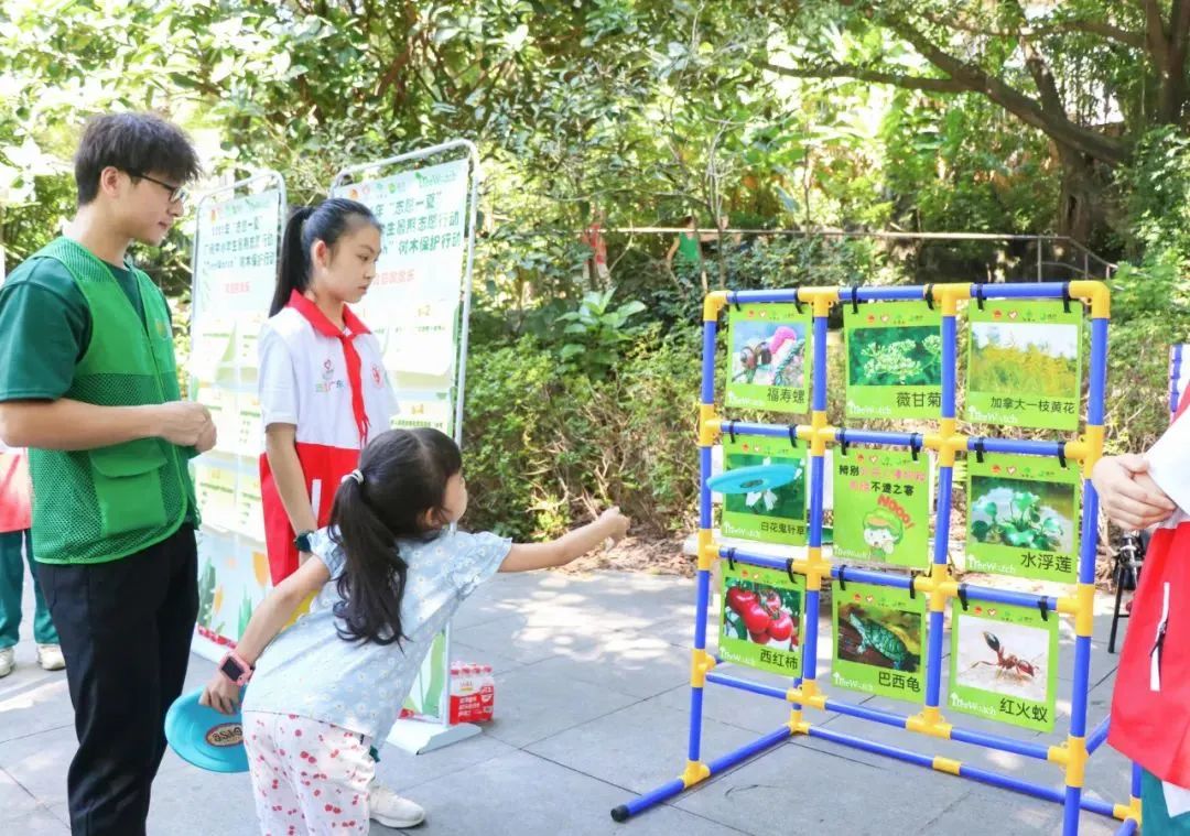 活动现场,团市委积极探索创新志愿服务活动形式,从青少年便于参与、乐于参与的角度出发,设计兼具趣味性和实效性的互动游戏,开发了保护树木大闯关、树木保护连连看、掀开保树奥秘和追击外来入侵物种等互动摊位科普游戏,中学生志愿者为树木做“体检”后,积极将所学知识通过游戏形式传播给市民群众,现场欢声笑语不断。在活动尾声,各小组选派一位志愿者代表进行总结分享,志愿者代表向广州市越秀公园递交《树木调查表》。