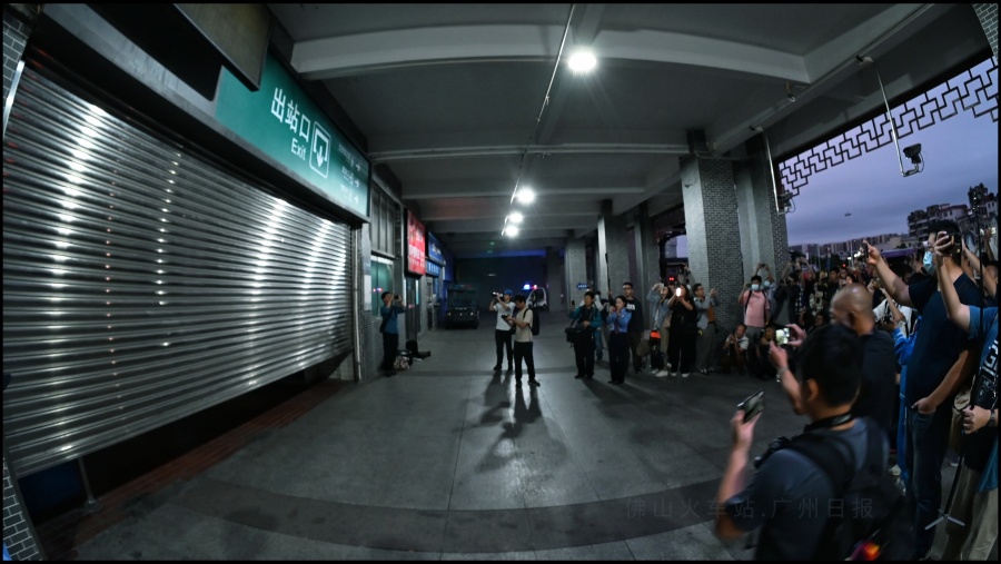 尽管最后一趟列车出发时间在凌晨,但仍有大约100位旅客来到佛山火车站,踏上了这趟颇具意义的旅程。凌晨5时,平静的火车站广场开始有了“人气”。旅客们带着大包小包,有序排队进入车站。站外,从各地赶来的市民、媒体和摄影爱好者,聚在一起,举着相机和手机,不停地拍着视频和照片,记录着自己的遇见。