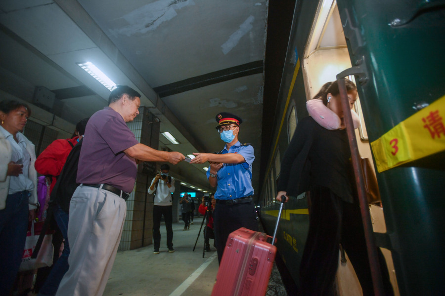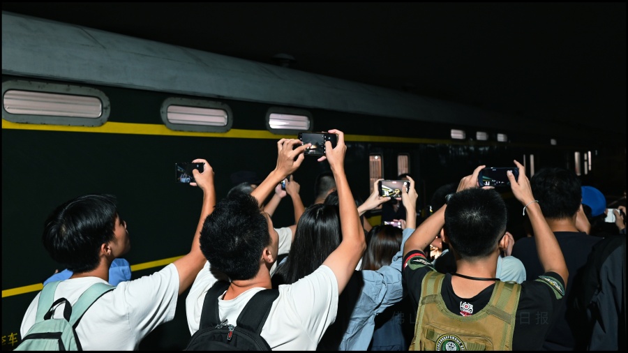 火车的站台,总是充满着悲欢离别。在这天站台上,佛山火车站的工作人员都在用自己独特的方式和旅客们一一作别。列车发出前,佛山火车站的站长带着大家,向车厢里的乘客挥手告别;当车厢工作人员与摄影师对视那一刻,也默契地挥了挥手;列车驶离时,一位工作人员还在一旁架起了手机,用视频记录他站好最后一班岗,与最后一趟列车来了一次合影。