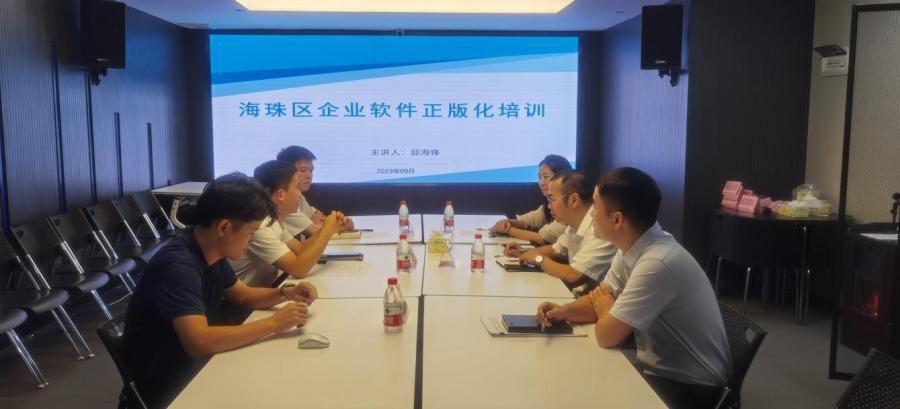 会议讲解了海珠区2023年推进企业使用正版软件工作的具体要求,并说明了后续的检查和考核安排。
