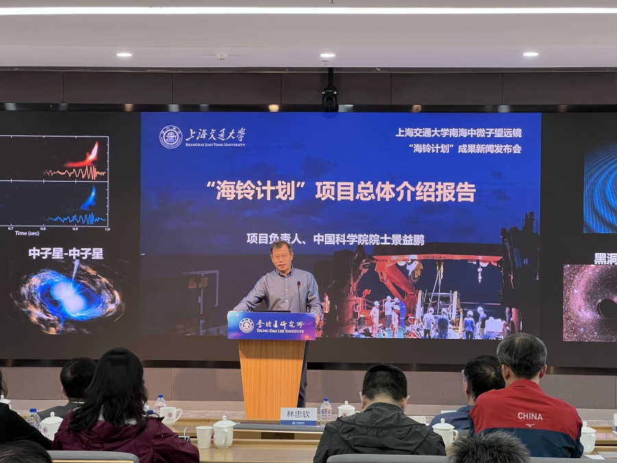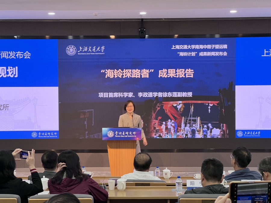 10月10月,上海交通大学举办南海中微子望远镜“海铃计划”成果新闻发布会,项目负责人、中国科学院院士景益鹏,项目首席科学家、李政道学者徐东莲副教授,项目海洋工程与技术专家、船建学院田新亮教授等出席发布会,介绍项目总体情况及未来目标,并展示了相关仪器。