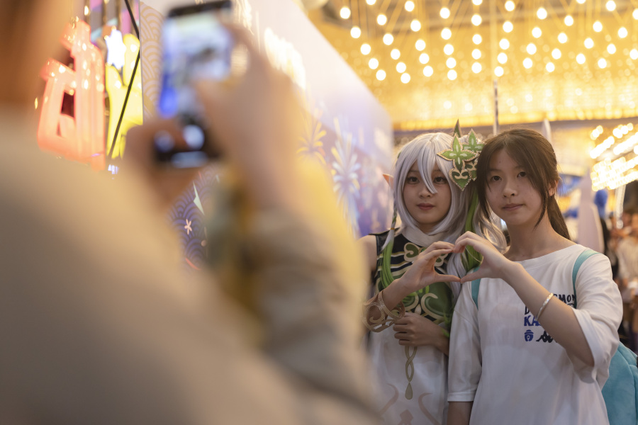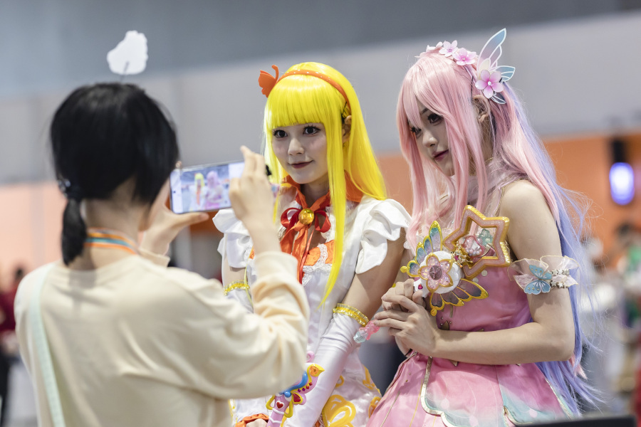 广州琶洲,Coser和游客在一场展览上拍照打卡。一个漂亮的Coser小姐姐或者小哥哥能吸引无数观众的目光。