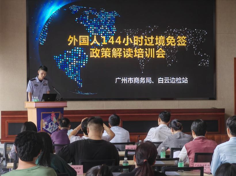 会上,广州边检总站对过境免签政策进行了详细解读并现场答疑,南航集团、省机场集团分别针对落实外国人144小时过境免签政策有关配套服务进行了说明,市公安局、市文旅局及各区商务部门、有关行业商协会、企业代表有关负责人进行了业务交流。